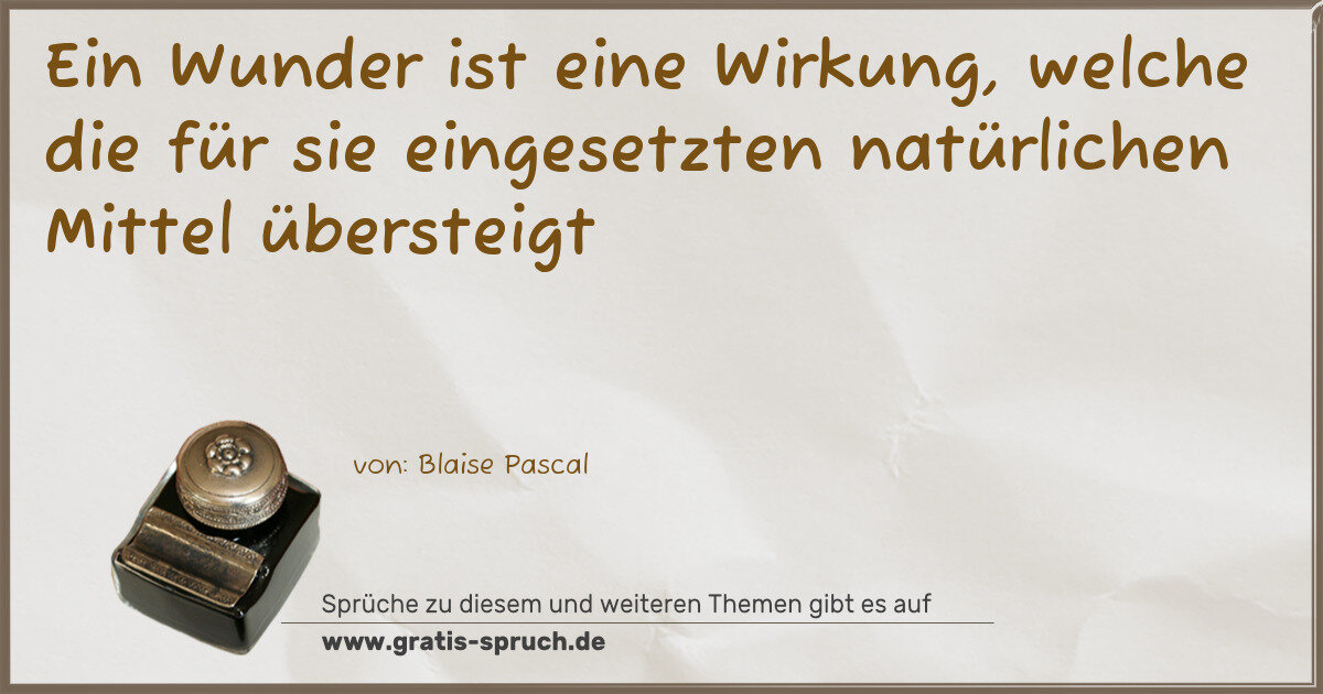 Ein Wunder ist eine Wirkung, welche die für sie eingesetzten natürlichen Mittel übersteigt