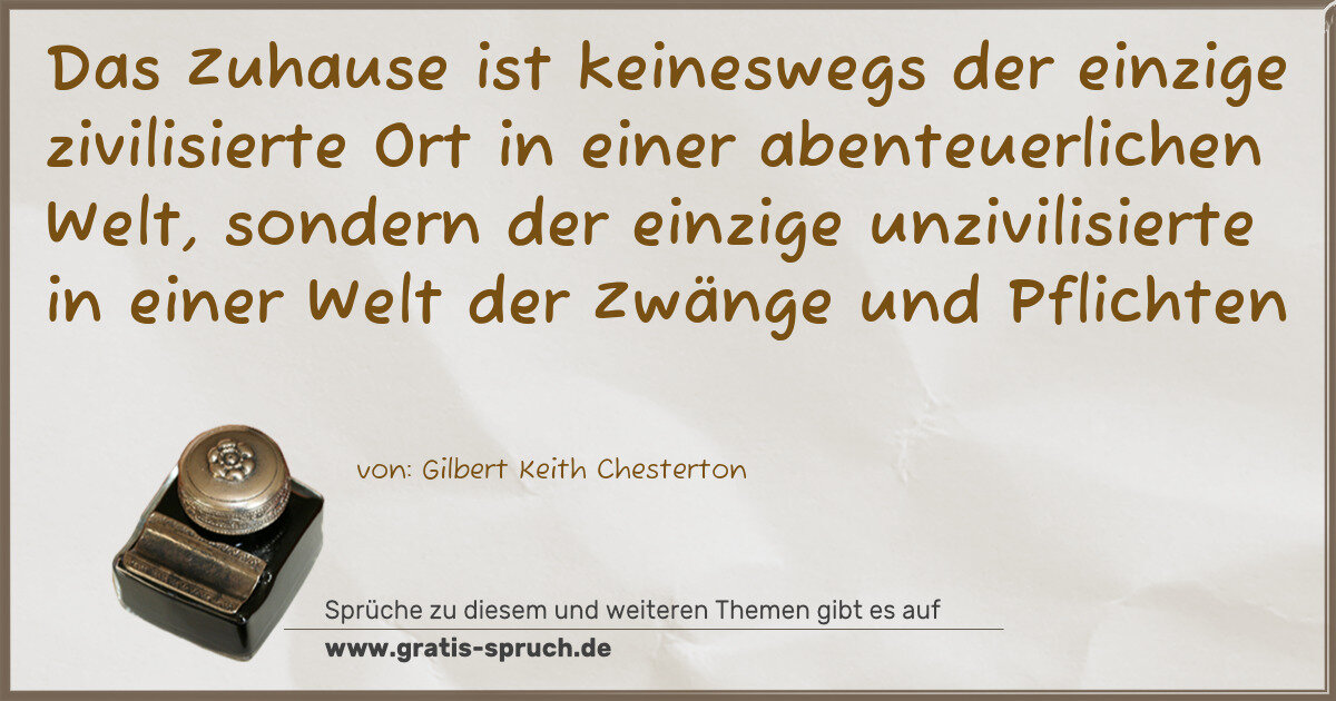 Das Zuhause ist keineswegs der einzige zivilisierte Ort in einer abenteuerlichen Welt, sondern der einzige unzivilisierte in einer Welt der Zwänge und Pflichten