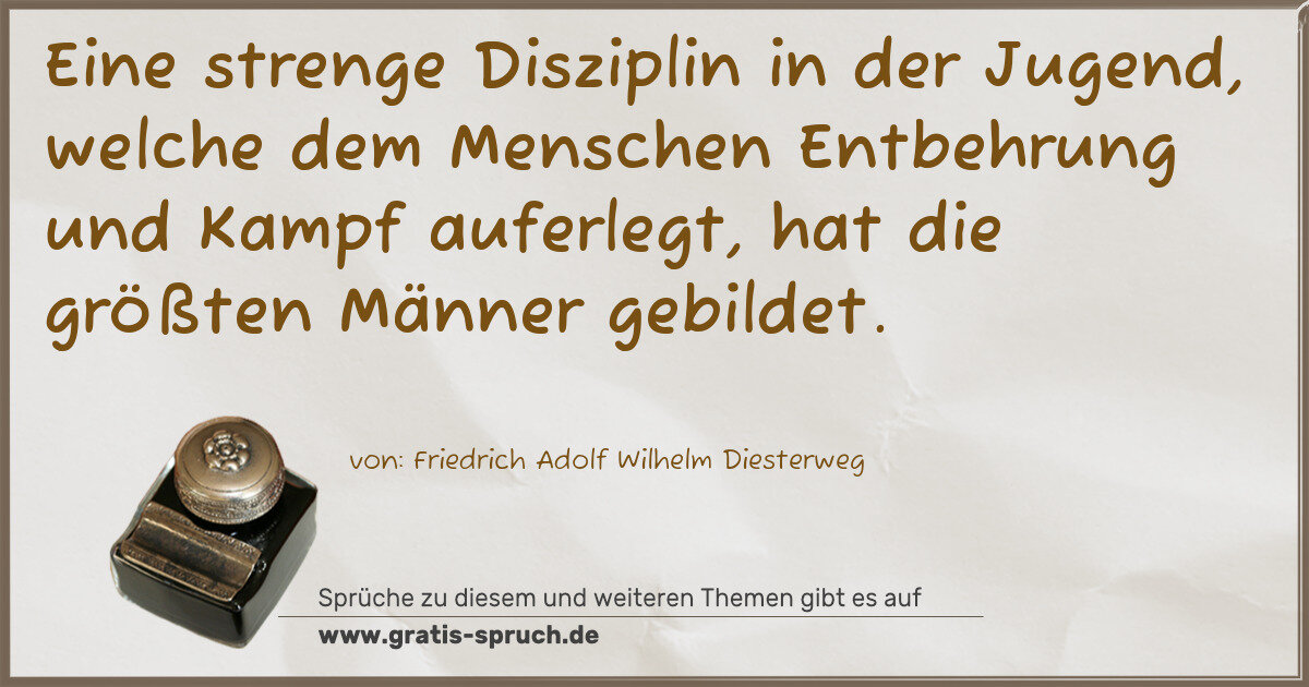 Eine strenge Disziplin in der Jugend, welche dem Menschen Entbehrung und Kampf auferlegt, hat die größten Männer gebildet.