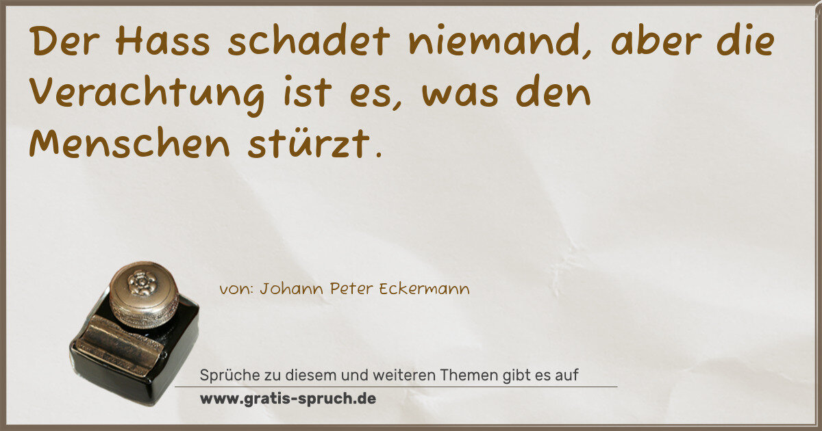 Der Hass schadet niemand, aber die Verachtung ist es, was den Menschen stürzt.