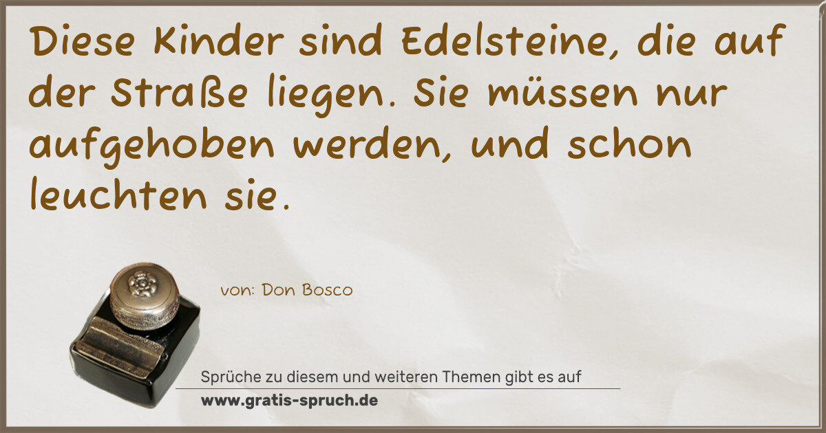 Diese Kinder sind Edelsteine, die auf der Straße liegen. Sie müssen nur aufgehoben werden, und schon leuchten sie.