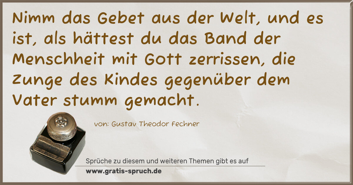Nimm das Gebet aus der Welt, und es ist, als hättest du das Band der Menschheit mit Gott zerrissen, die Zunge des Kindes gegenüber dem Vater stumm gemacht.