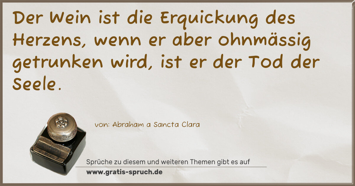 Der Wein ist die Erquickung des Herzens, wenn er aber ohnmässig getrunken wird, ist er der Tod der Seele.