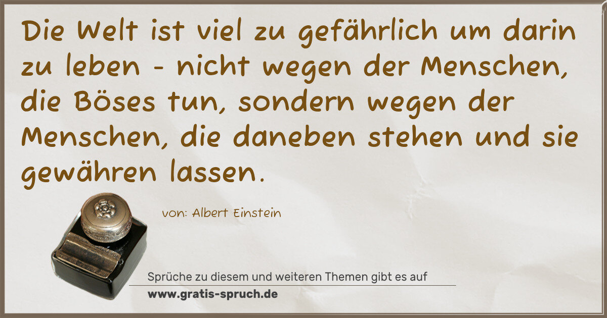 Die Welt ist viel zu gefährlich um darin zu leben - nicht wegen der Menschen, die Böses tun, sondern wegen der Menschen, die daneben stehen und sie gewähren lassen.