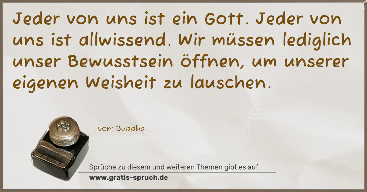 Jeder von uns ist ein Gott. Jeder von uns ist allwissend. Wir müssen lediglich unser Bewusstsein öffnen, um unserer eigenen Weisheit zu lauschen.