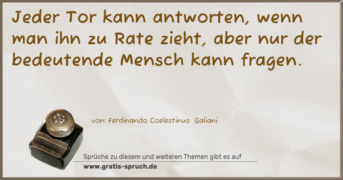 Jeder Tor kann antworten, wenn man ihn zu Rate zieht, aber nur der bedeutende Mensch kann fragen.
