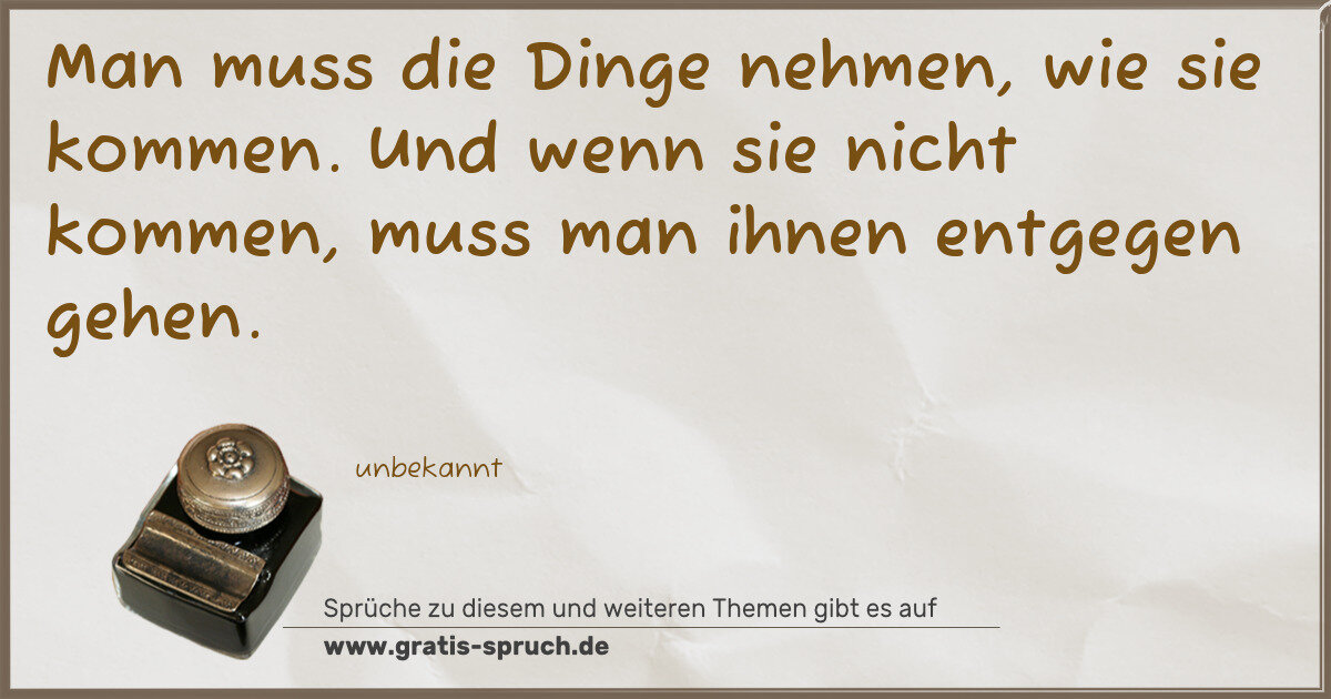 Man muss die Dinge nehmen, wie sie kommen. Und wenn sie nicht kommen, muss man ihnen entgegen gehen.