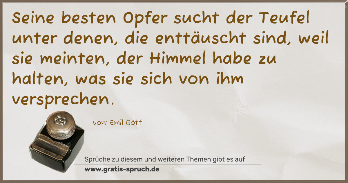 Seine besten Opfer sucht der Teufel unter denen, die enttäuscht sind, weil sie meinten, der Himmel habe zu halten, was sie sich von ihm versprechen.