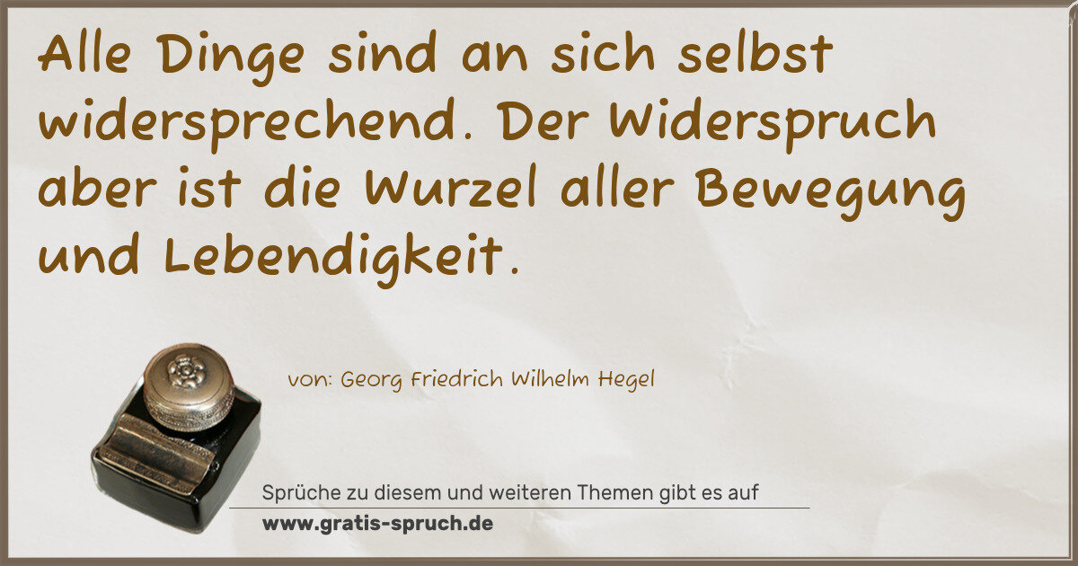 Alle Dinge sind an sich selbst widersprechend. Der Widerspruch aber ist die Wurzel aller Bewegung und Lebendigkeit.