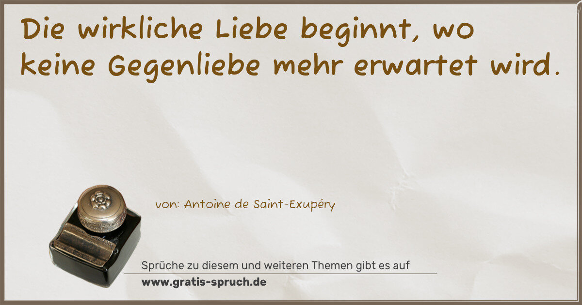 Die wirkliche Liebe beginnt, wo keine Gegenliebe mehr erwartet wird.