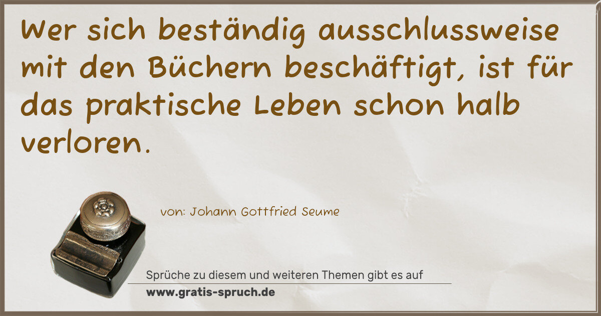 Wer sich beständig ausschlussweise mit den Büchern beschäftigt, ist für das praktische Leben schon halb verloren.