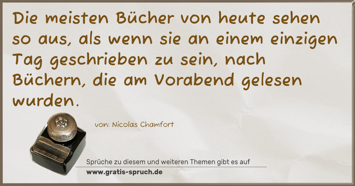 Die meisten Bücher von heute sehen so aus, als wenn sie an einem einzigen Tag geschrieben zu sein, nach Büchern, die am Vorabend gelesen wurden.