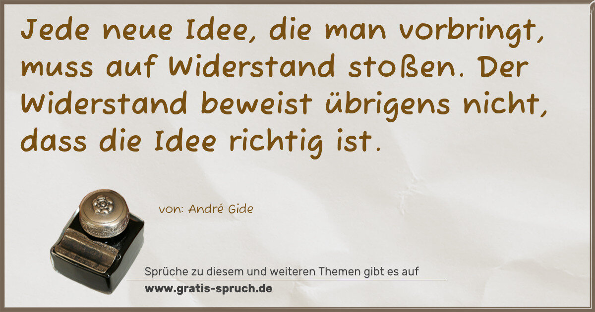 Jede neue Idee, die man vorbringt, muss auf Widerstand stoßen. Der Widerstand beweist übrigens nicht, dass die Idee richtig ist.