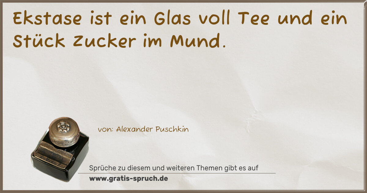 Ekstase ist ein Glas voll Tee und ein Stück Zucker im Mund.
