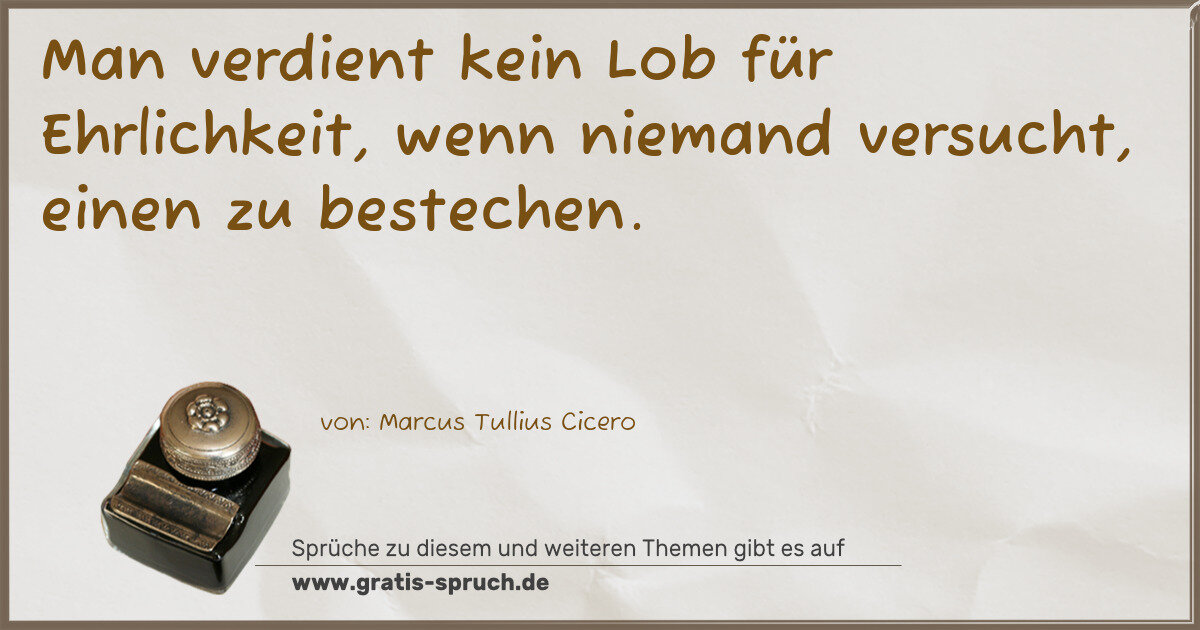 Man verdient kein Lob für Ehrlichkeit, wenn niemand versucht, einen zu bestechen.