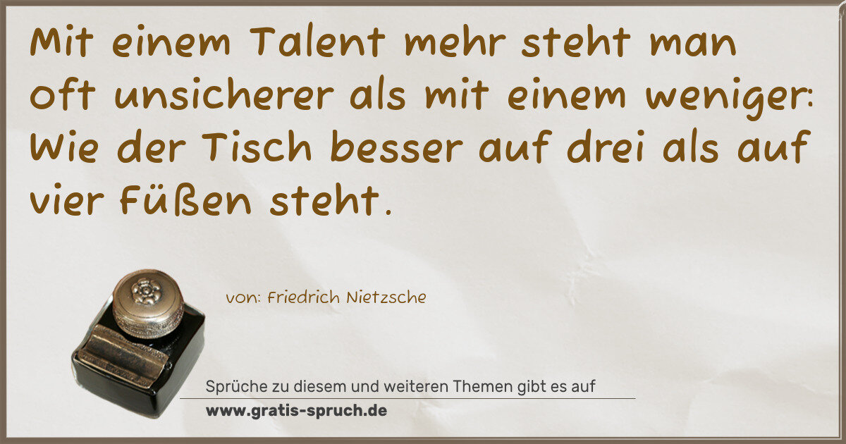 Mit einem Talent mehr steht man oft unsicherer als mit einem weniger: Wie der Tisch besser auf drei als auf vier Füßen steht.