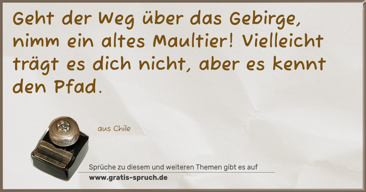 Geht der Weg über das Gebirge, nimm ein altes Maultier! Vielleicht trägt es dich nicht, aber es kennt den Pfad.