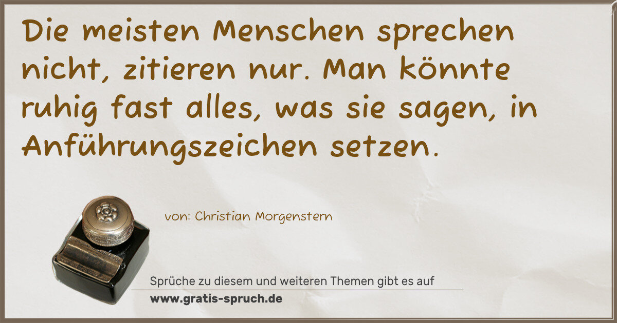 Die meisten Menschen sprechen nicht, zitieren nur. Man könnte ruhig fast alles, was sie sagen, in Anführungszeichen setzen.