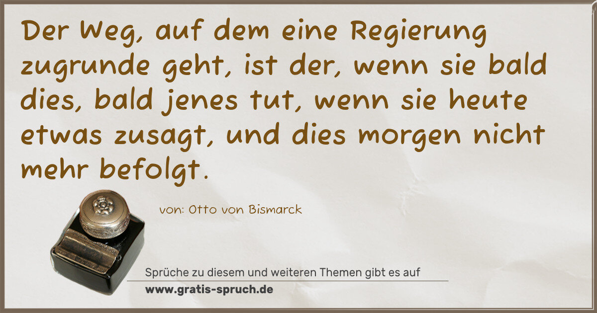 Der Weg, auf dem eine Regierung zugrunde geht, ist der, wenn sie bald dies, bald jenes tut, wenn sie heute etwas zusagt, und dies morgen nicht mehr befolgt.