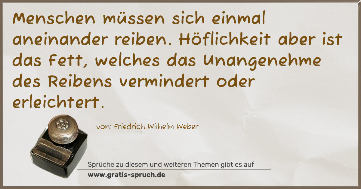 Menschen müssen sich einmal aneinander reiben. Höflichkeit aber ist das Fett, welches das Unangenehme des Reibens vermindert oder erleichtert.
