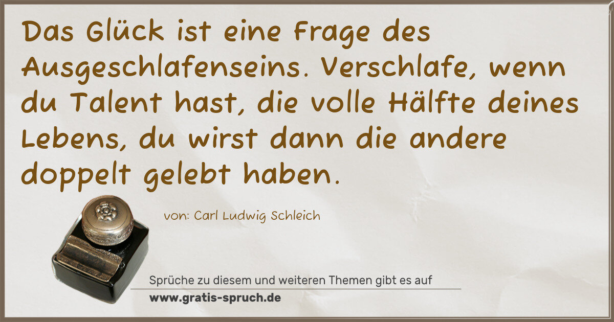 Das Glück ist eine Frage des Ausgeschlafenseins. Verschlafe, wenn du Talent hast, die volle Hälfte deines Lebens, du wirst dann die andere doppelt gelebt haben.