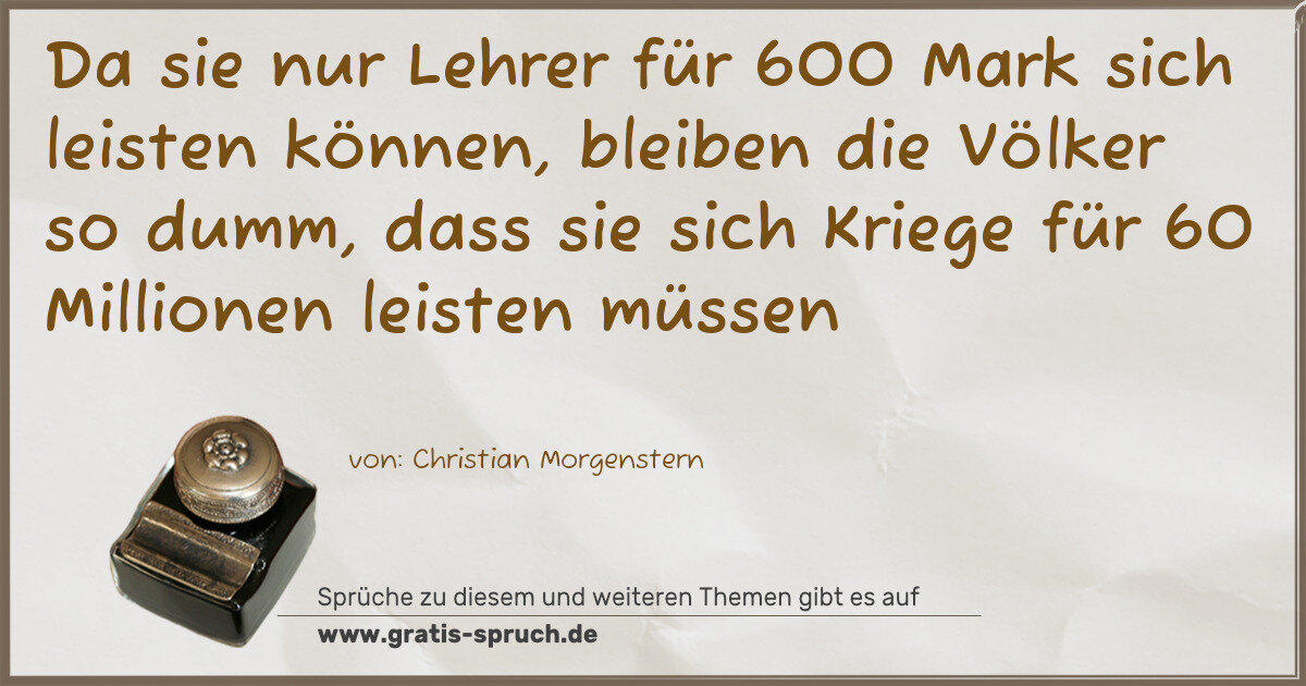 Da sie nur Lehrer für 600 Mark sich leisten können, bleiben die Völker so dumm, dass sie sich Kriege für 60 Millionen leisten müssen
