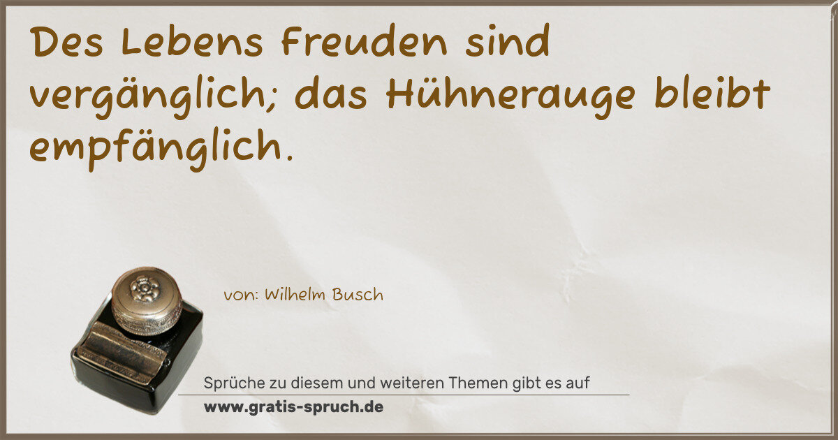 Des Lebens Freuden sind vergänglich; das Hühnerauge bleibt empfänglich.
