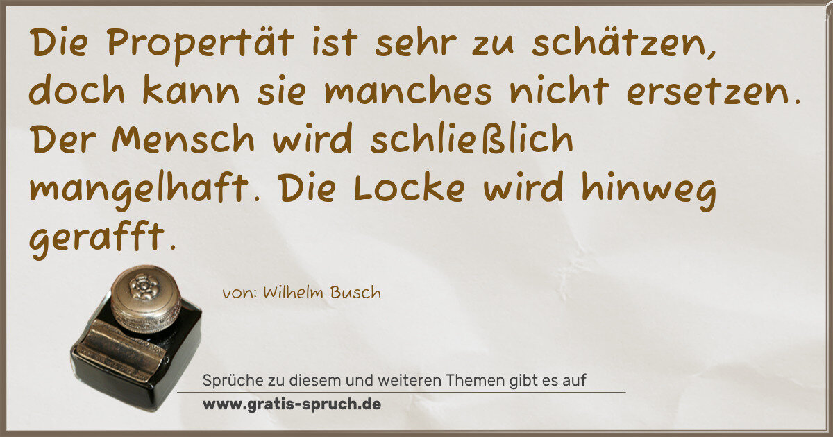Die Propertät ist sehr zu schätzen, doch kann sie manches nicht ersetzen. Der Mensch wird schließlich mangelhaft. Die Locke wird hinweg gerafft.