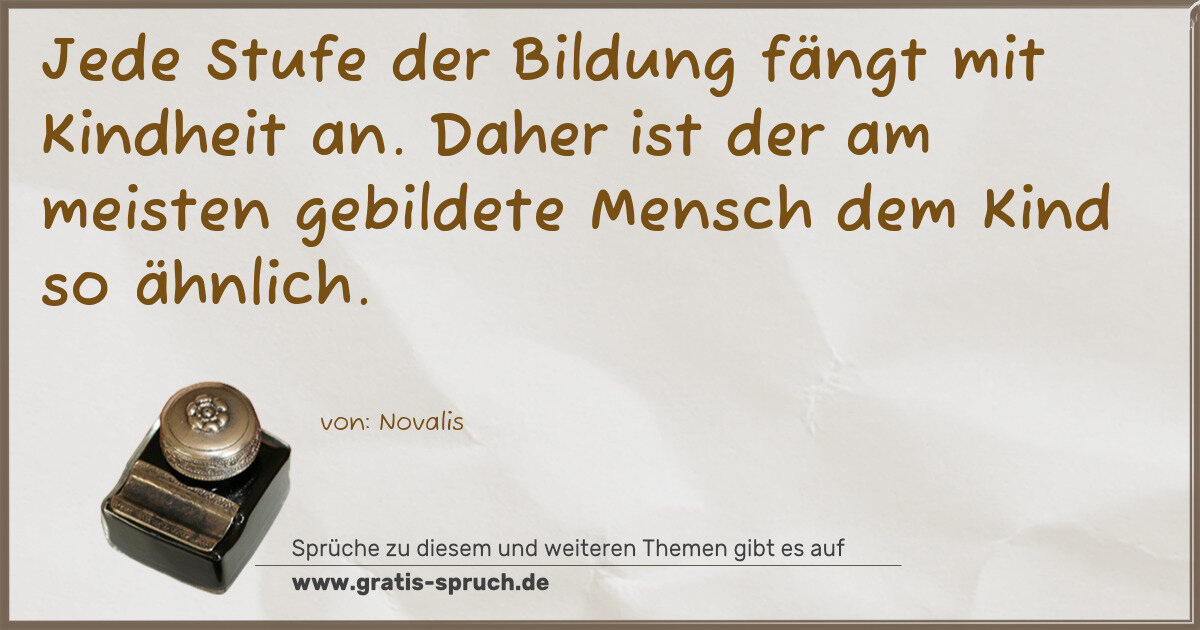 Jede Stufe der Bildung fängt mit Kindheit an. Daher ist der am meisten gebildete Mensch dem Kind so ähnlich.