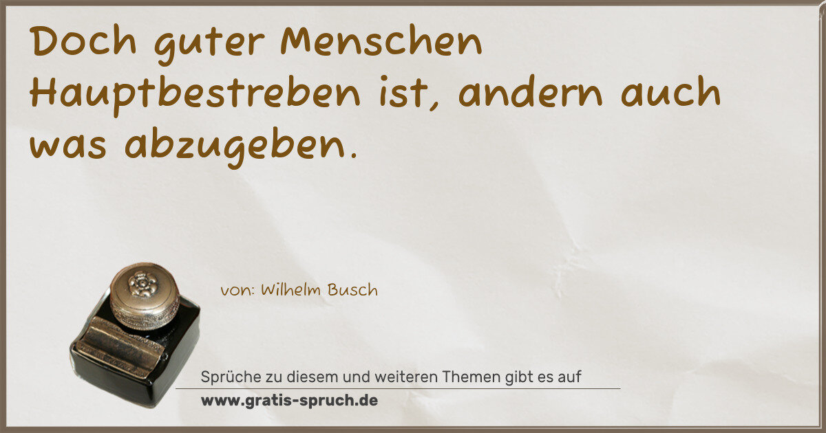 Doch guter Menschen Hauptbestreben ist, andern auch was abzugeben.