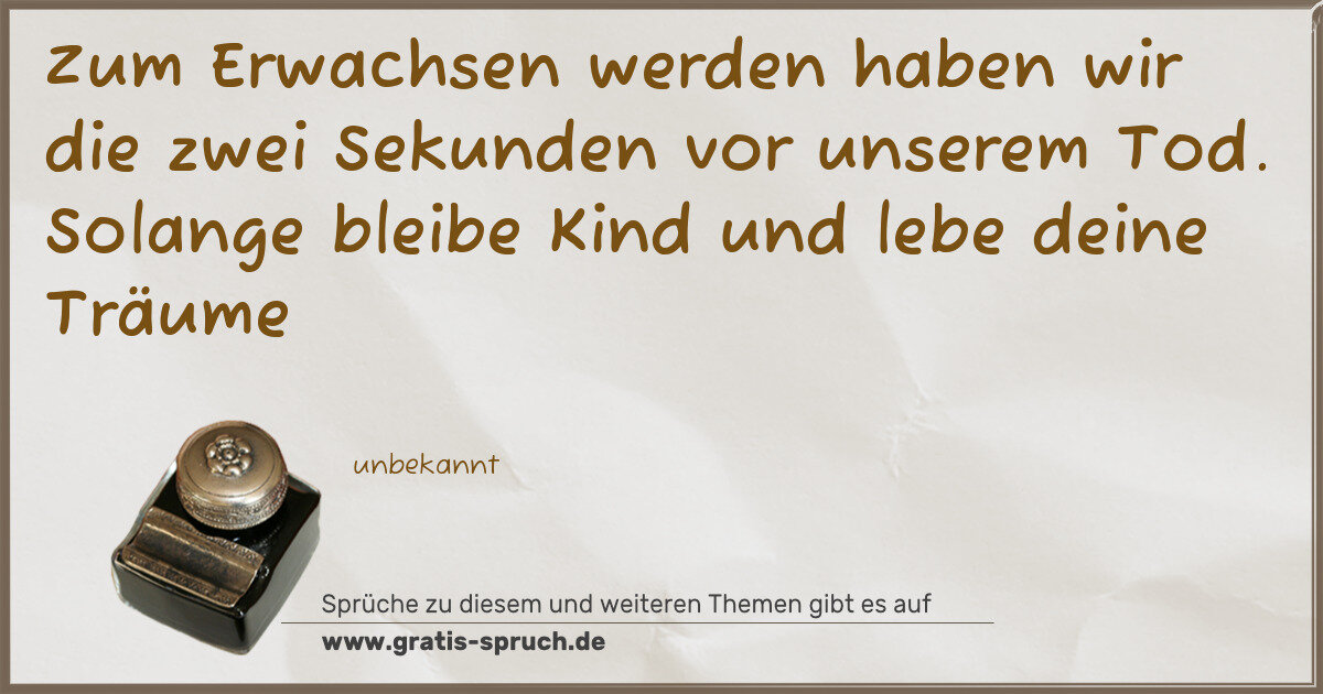 Zum Erwachsen werden haben wir die zwei Sekunden vor unserem Tod. Solange bleibe Kind und lebe deine Träume