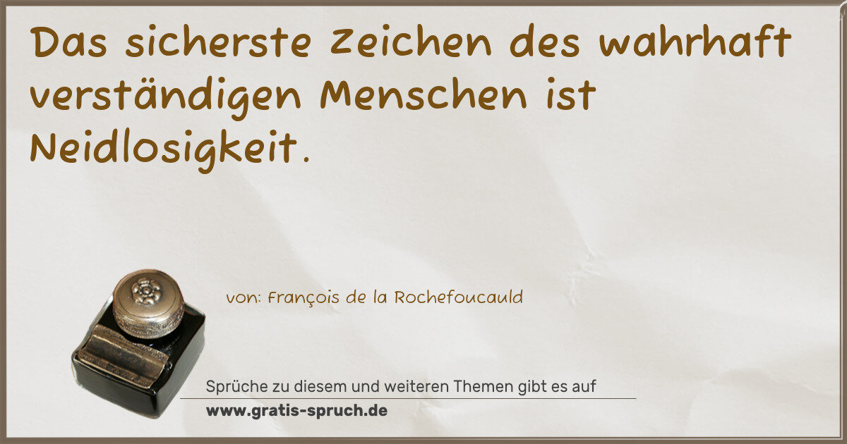 Das sicherste Zeichen des wahrhaft verständigen Menschen ist Neidlosigkeit.