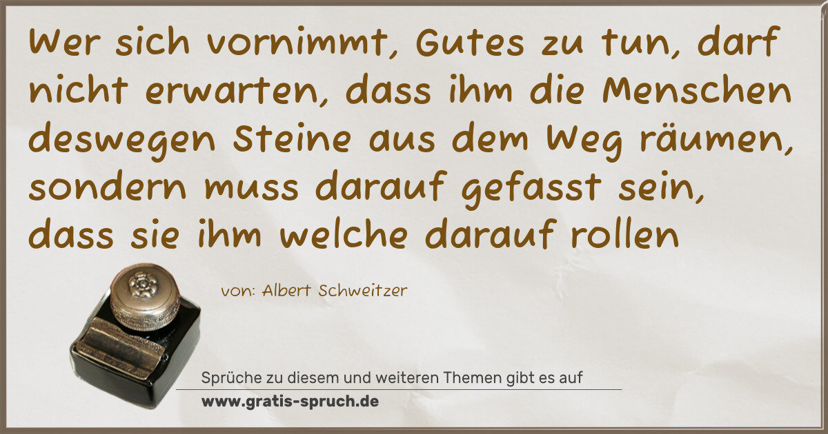 Wer sich vornimmt, Gutes zu tun, darf nicht erwarten, dass ihm die Menschen deswegen Steine aus dem Weg räumen, sondern muss darauf gefasst sein, dass sie ihm welche darauf rollen