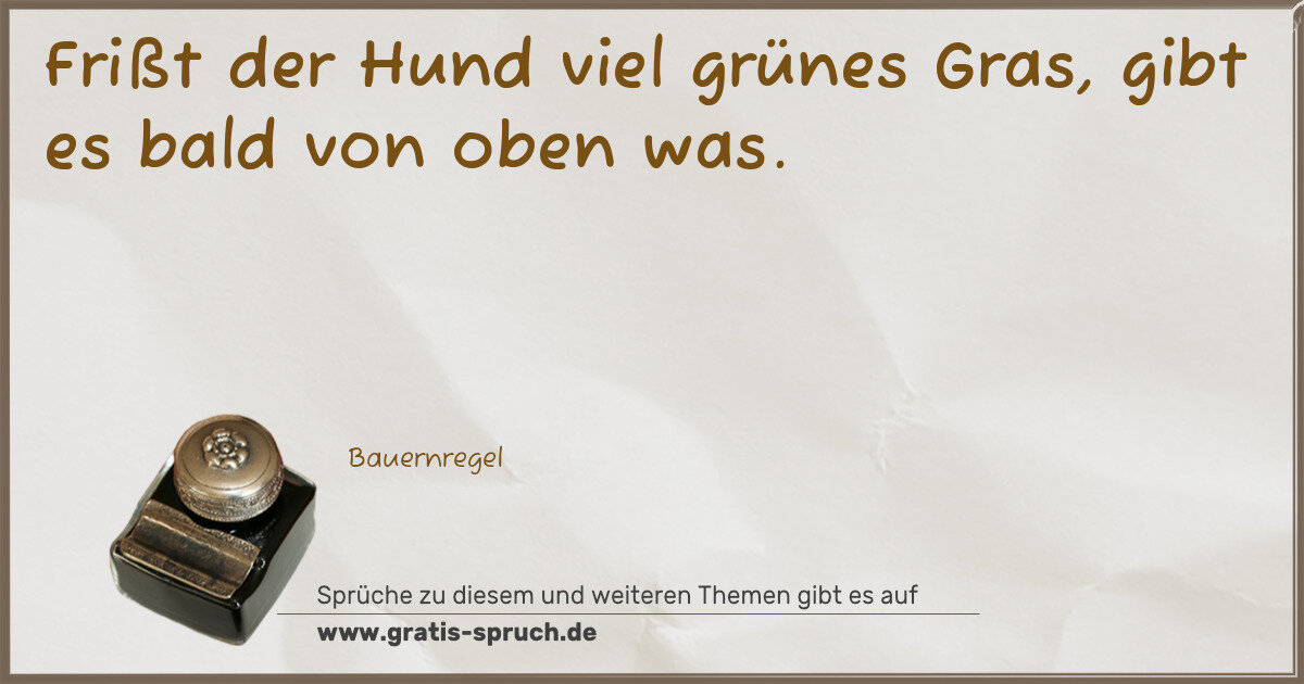 Frißt der Hund viel grünes Gras, gibt es bald von oben was.
