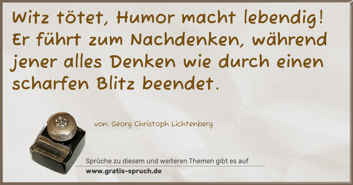 Witz tötet, Humor macht lebendig! Er führt zum Nachdenken, während jener alles Denken wie durch einen scharfen Blitz beendet.