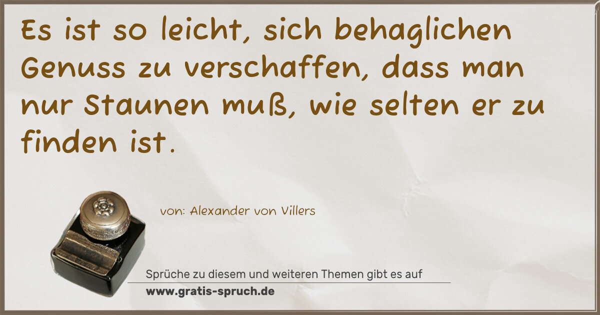 Es ist so leicht, sich behaglichen Genuss zu verschaffen, dass man nur Staunen muß, wie selten er zu finden ist.