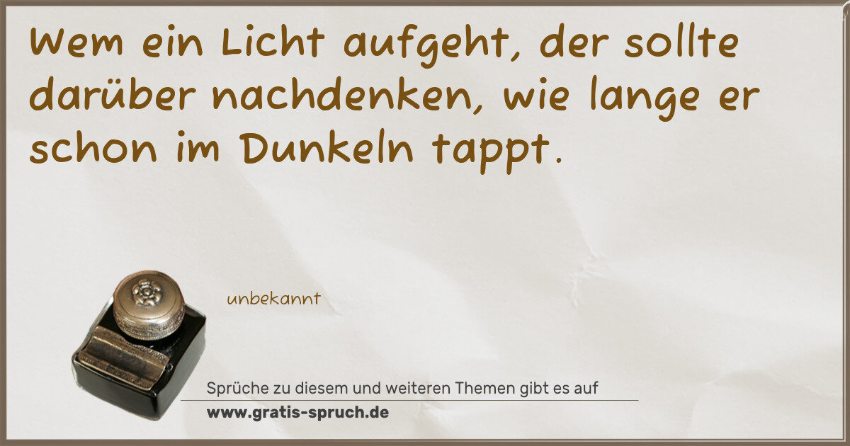 Wem ein Licht aufgeht, der sollte darüber nachdenken, wie lange er schon im Dunkeln tappt.