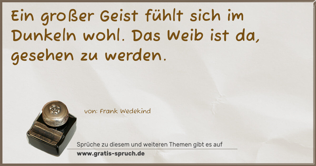 Ein großer Geist fühlt sich im Dunkeln wohl. Das Weib ist da, gesehen zu werden.
