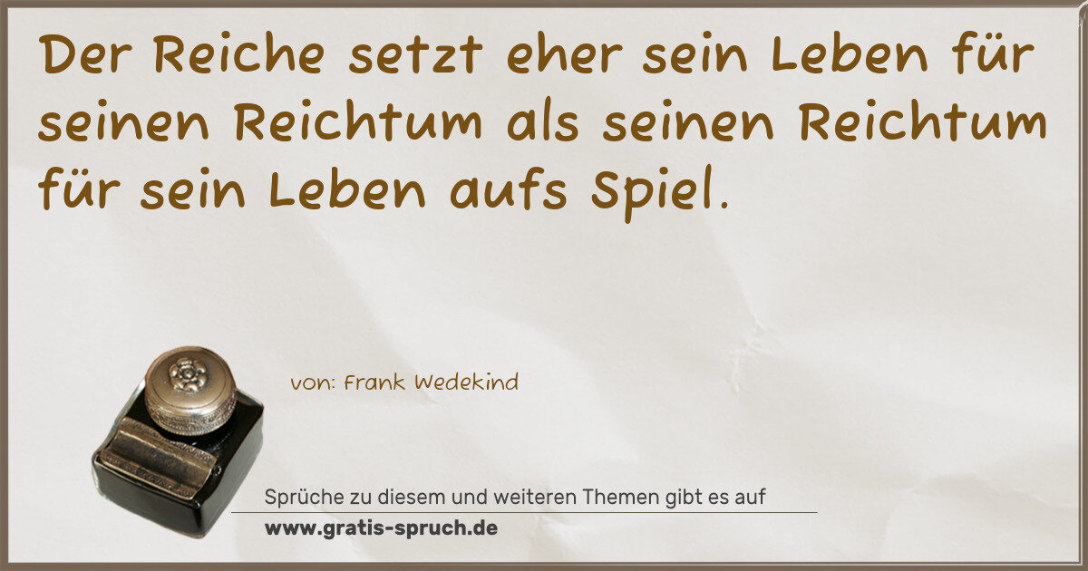 Der Reiche setzt eher sein Leben für seinen Reichtum als seinen Reichtum für sein Leben aufs Spiel.