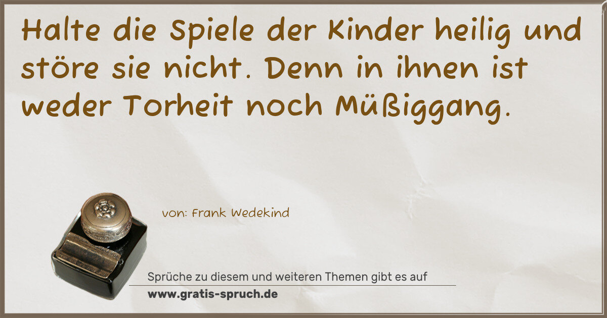 Halte die Spiele der Kinder heilig und störe sie nicht. Denn in ihnen ist weder Torheit noch Müßiggang.