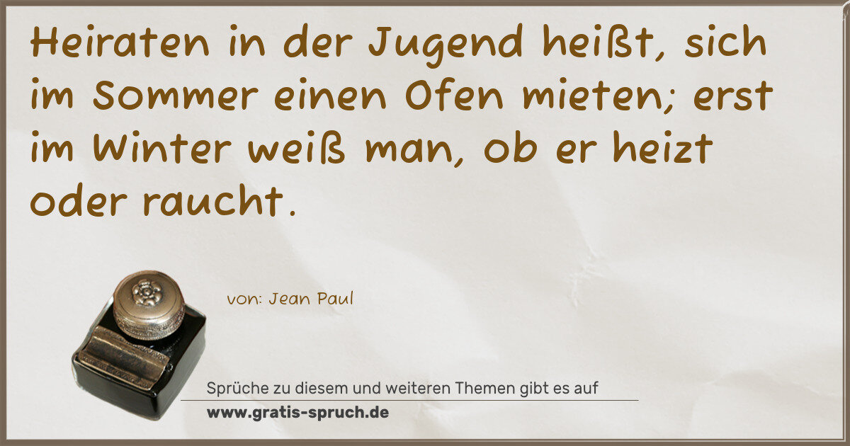 Heiraten in der Jugend heißt, sich im Sommer einen Ofen mieten; erst im Winter weiß man, ob er heizt oder raucht.