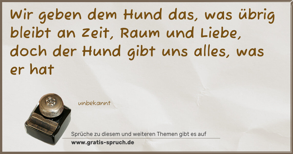 Wir geben dem Hund das, was übrig bleibt an Zeit, Raum und Liebe, doch der Hund gibt uns alles, was er hat
