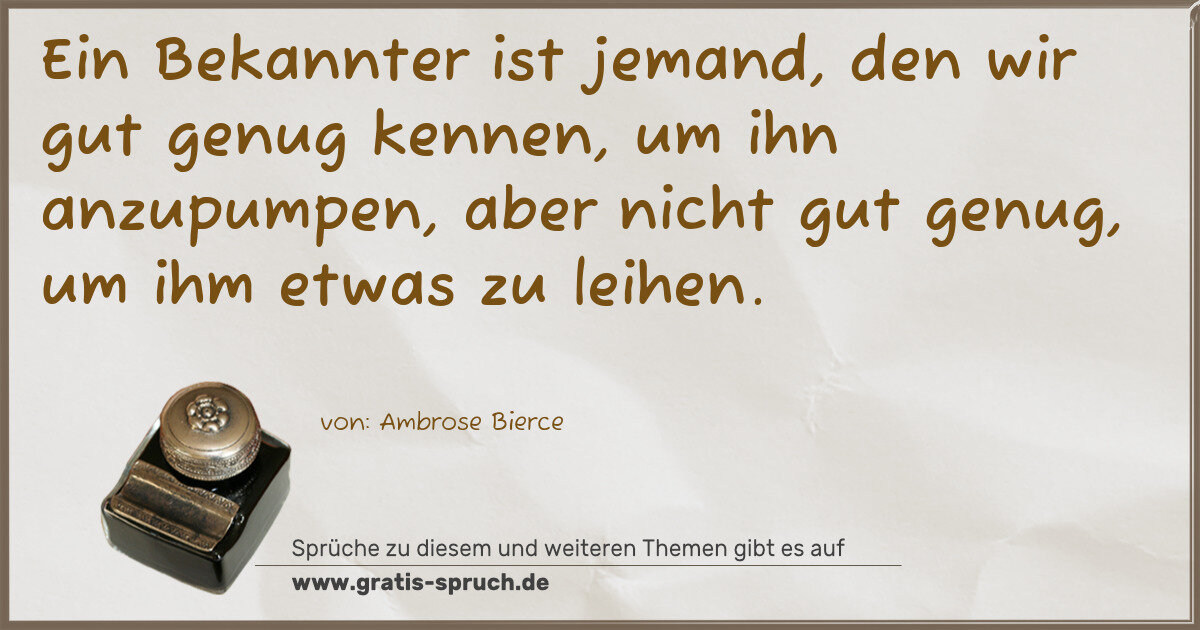 Ein Bekannter ist jemand, den wir gut genug kennen, um ihn anzupumpen, aber nicht gut genug, um ihm etwas zu leihen.