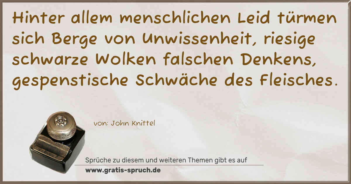 Hinter allem menschlichen Leid türmen sich Berge von Unwissenheit, riesige schwarze Wolken falschen Denkens, gespenstische Schwäche des Fleisches.