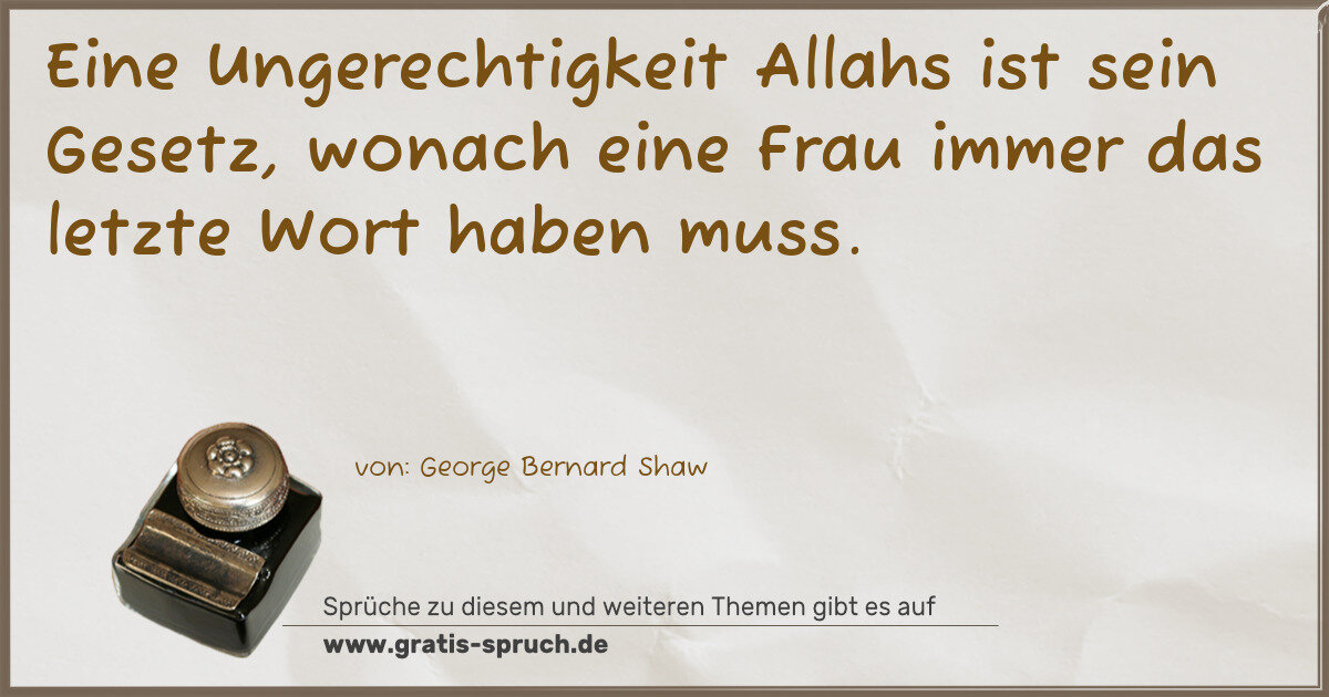 Eine Ungerechtigkeit Allahs ist sein Gesetz, wonach eine Frau immer das letzte Wort haben muss.