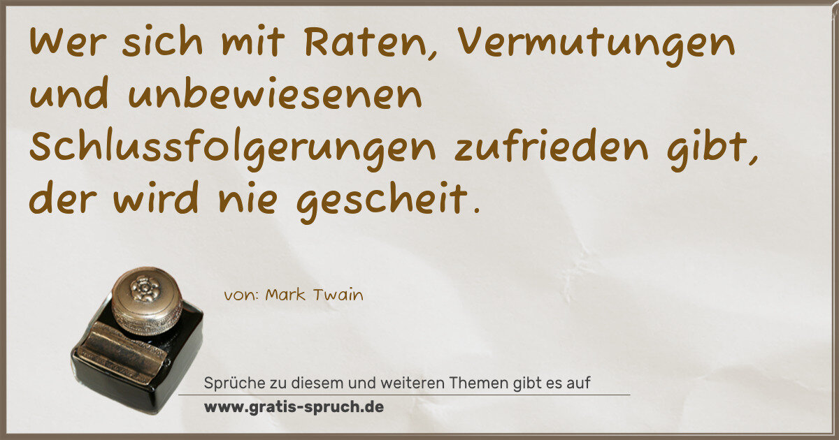 Wer sich mit Raten, Vermutungen und unbewiesenen Schlussfolgerungen zufrieden gibt, der wird nie gescheit.