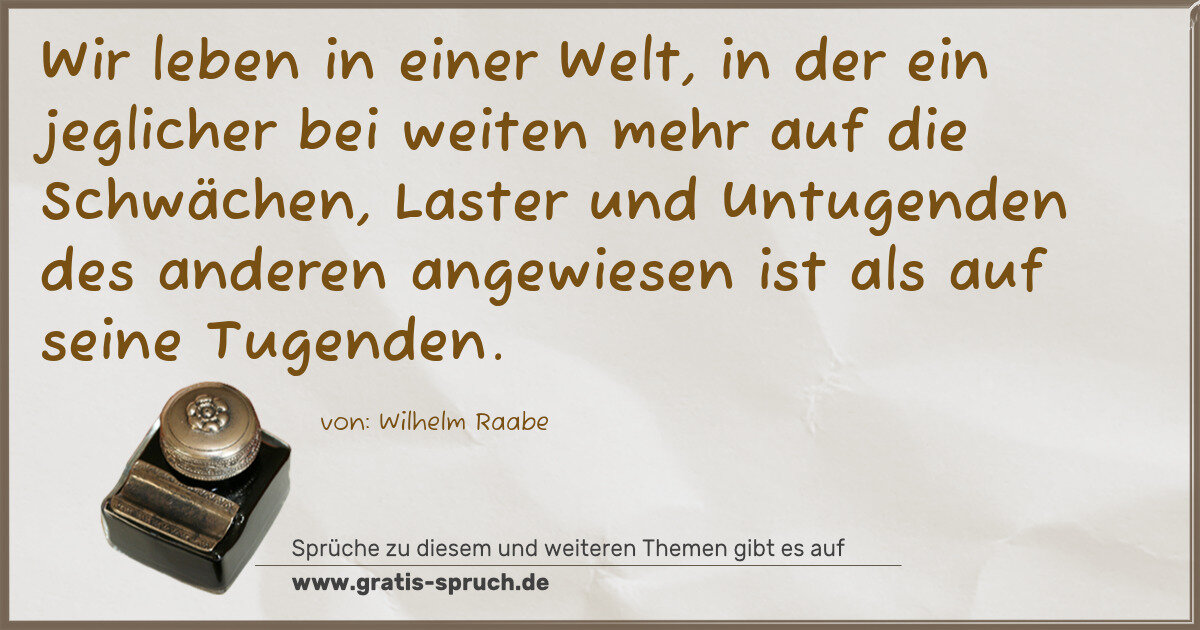 Wir leben in einer Welt, in der ein jeglicher bei weiten mehr auf die Schwächen, Laster und Untugenden des anderen angewiesen ist als auf seine Tugenden.