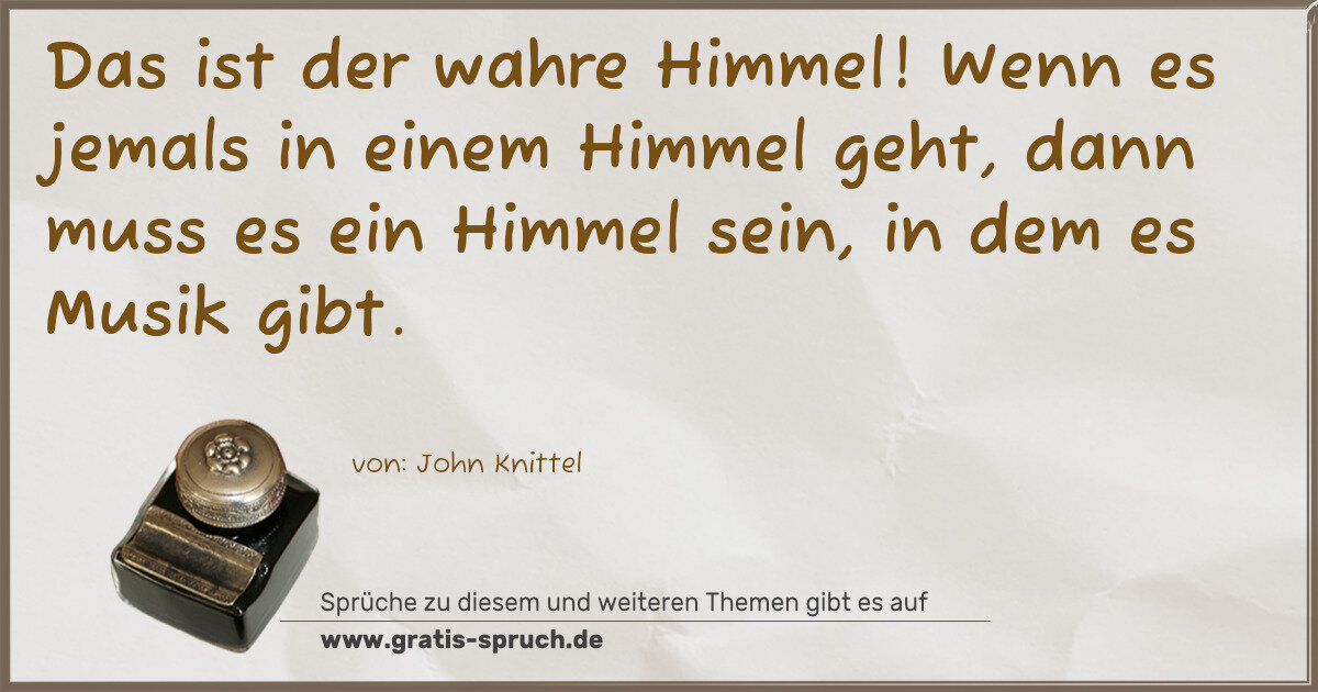 Das ist der wahre Himmel! Wenn es jemals in einem Himmel geht, dann muss es ein Himmel sein, in dem es Musik gibt.