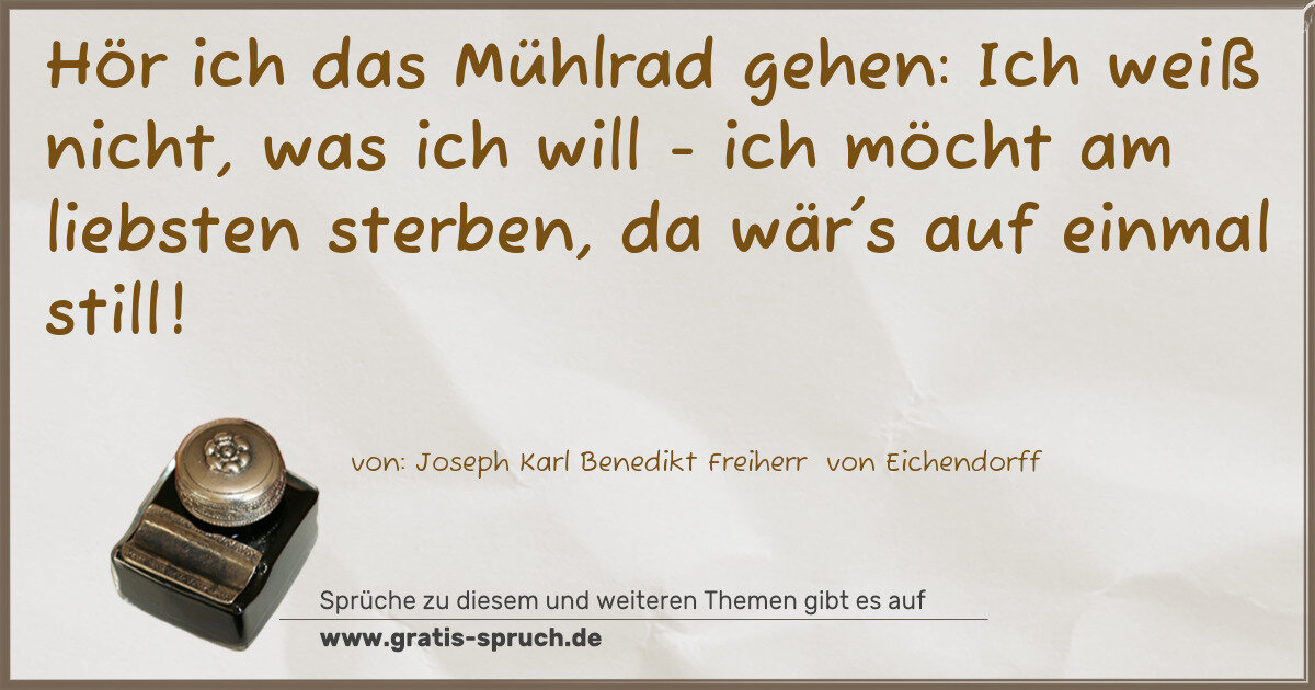 Hör ich das Mühlrad gehen: Ich weiß nicht, was ich will - ich möcht am liebsten sterben, da wär's auf einmal still!