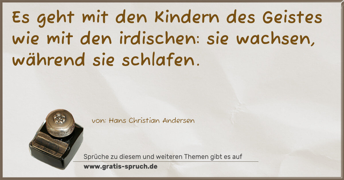 Es geht mit den Kindern des Geistes wie mit den irdischen: sie wachsen, während sie schlafen.